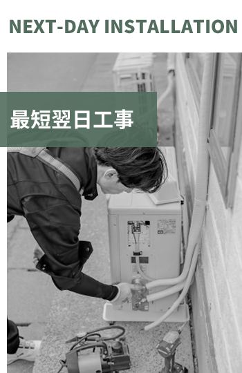 関西エアコンサポートでは最短で翌日、遅くとも翌々日までに工事が可能です。