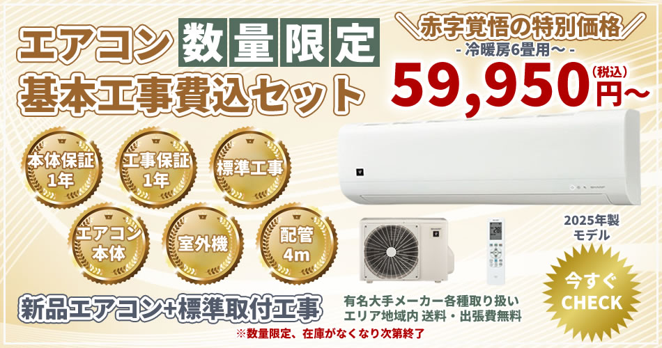 取り付けするエアコンが【新品】の場合は別料金となります。